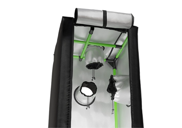 Herbgarden Silver 35 to kompaktowy namiot do uprawy do najmniejszych przestrzeni, idealny na rozsady, zioła i małe rośliny. Wnętrze z Mylar 210D poprawia odbicie i rozproszenie światła, a stelaż 16 mm z mocnymi łącznikami utrzymuje lampę i filtr. Konstrukcja jest wodoszczelna, nie przepuszcza światła, materiał nadaje się do prania. W zestawie dodatkowa podłoga Mylar 210D, podwójne ściągacze na portach i 2 paski podtrzymujące do montażu filtra/wentylatora.
