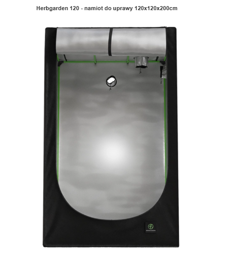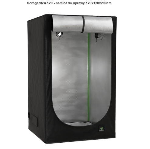 Herbgarden 120 Silver to namiot do uprawy roślin przeznaczony do prowadzenia stabilnej uprawy indoor w kontrolowanych warunkach. Rozmiar 120x120 cm daje wygodną przestrzeń roboczą, a wysokość 200 cm pozwala na komfortowe podwieszanie oświetlenia, filtracji i wentylacji oraz prowadzenie roślin w różnych technikach uprawowych.