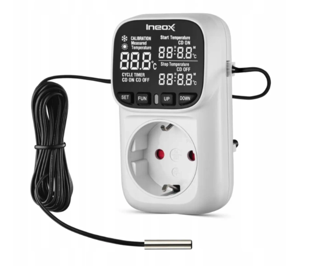 ermostat elektroniczny + timer Ineox TE-01 (gniazdkowy, 16 A, 3680 W)