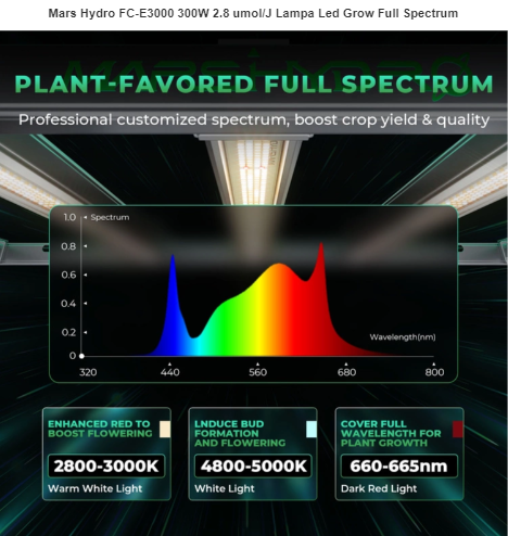 Mars Hydro FC-E3000 300W 2.8 umol/J Lampa Led Grow Full Spectrum