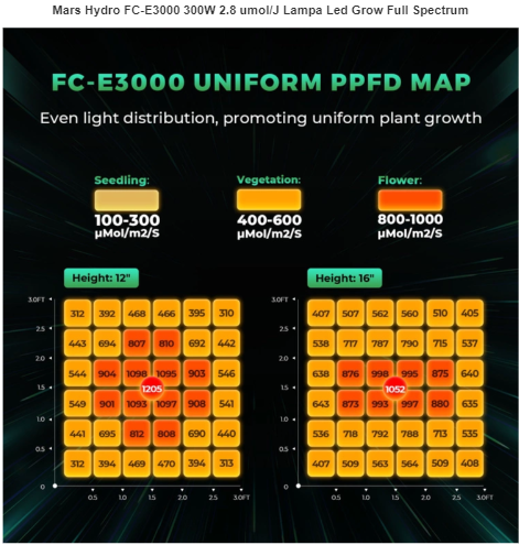 Mars Hydro FC-E3000 to wydajna, energooszczędna i wszechstronna lampa LED, która zapewnia roślinom pełne spektrum światła dla maksymalnego wzrostu i plonów.