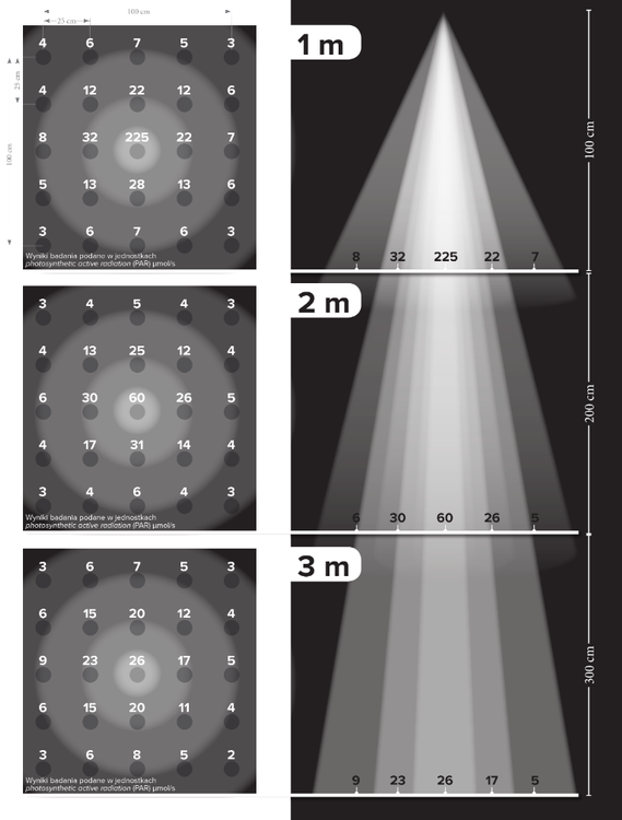 - Oświetla rośliny znajdujące się w odległości nawet do 3,5 metra