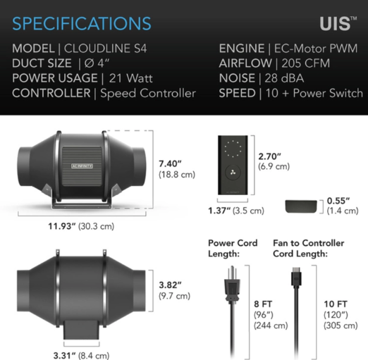 AC Infinity wentylator CLOUDLINE PRO 150mm 680 m3/h 10 trybów + kontroler prędkości