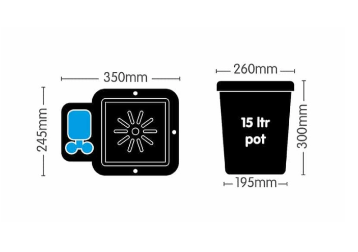 Taniej w zestawie!Doniczka AutoPot AP210/SQ 15 L to czarny pojemnik kompatybilny z systemami 1Pot oraz 2Pot (Easy2grow). Ma wysokość 30 cm oraz wymiary krawędzi 26 cm (góra) i 19,5 cm (dół). Otwory w dnie umożliwiają dopływ wody do rośliny w systemie nawadniania.