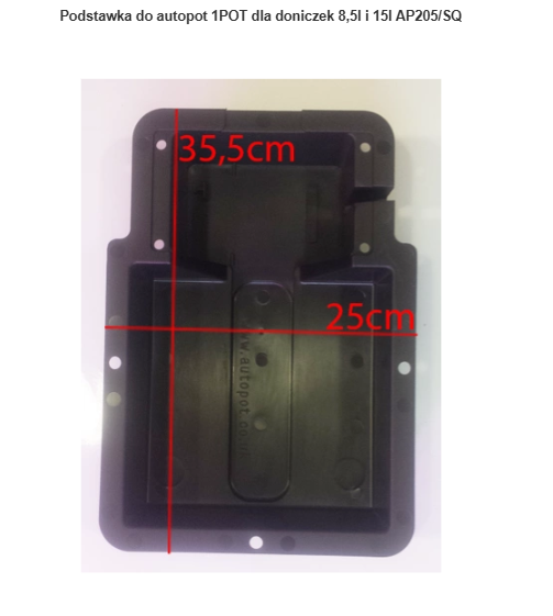 Taniej w zestawie!Podstawka AutoPot AP205/SQ do modułu 1POT jest kompatybilna z doniczkami 8,5 l oraz 15 l. Sprzedawana jest jako sama podstawka (bez zaślepki) i ma wymiary 35,5 cm x 25 cm. Do montażu podstawki należy dokupić uszczelkę 9 mm, aby zapobiec wylewaniu się wody.