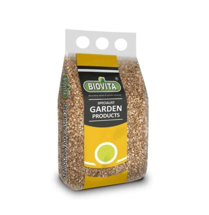 Biovita Wermikulit Ogrodniczy 1-5mm to wermikulit ogrodniczy (ekspandowany) w frakcji 1-5mm – minerał, uwodniony glinokrzemian magnezu o barwie żółto-brązowej. Podstawowa forma jest wydobywana w kopalniach wermikulitu, a następnie materiał jest poddawany obróbce cieplnej, po której uzyskuje wartości użytkowe odpowiednie dla ogrodnictwa. Jest to lekki granulat o właściwościach sorpcyjnych, nierozpuszczalny w wodzie.