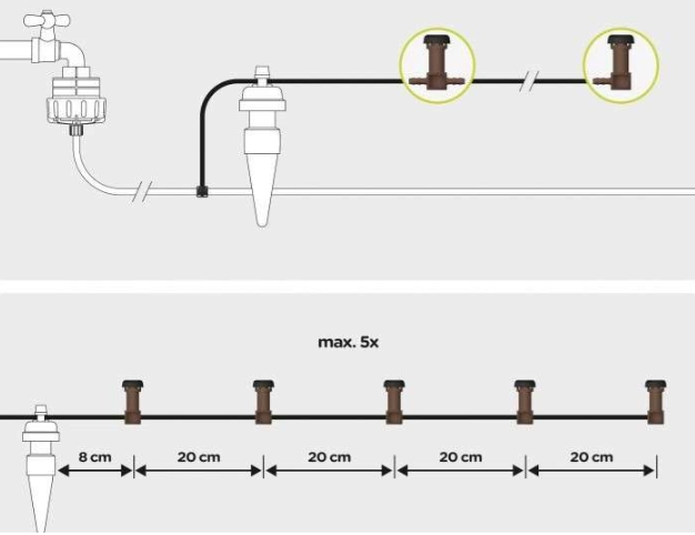 Końcowy kroplownik dystrybucyjny Blumat to element do zakończenia linii kroplującej w systemie automatycznego nawadniania Tropf-Blumat. Stosuje się go na końcu przewodu 3 mm w zestawach z kroplownikami dystrybucyjnymi, gdzie stanowi ostatni punkt wypływu wody w danej linii. Kroplownik pełni podwójną funkcję: nawadnia roślinę jak standardowy kroplownik przepływowy oraz zamyka linię dystrybucyjną, zapobiegając dalszemu przepływowi i utracie wody.