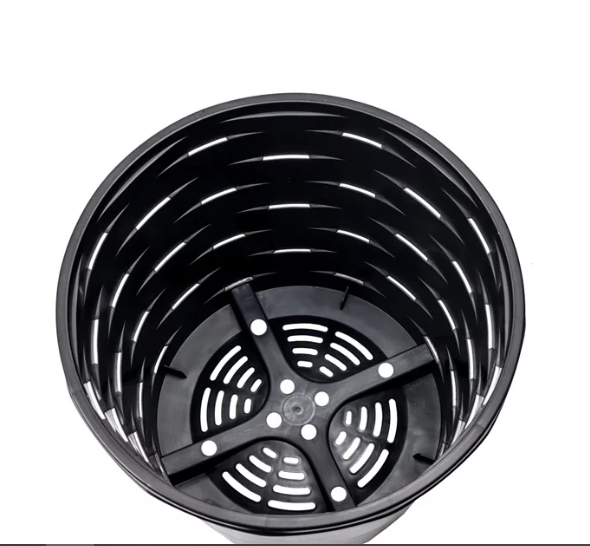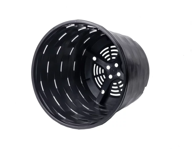 Otwory na całej powierzchni bocznej doniczki zapewniające intensywne napowietrzenie i odpływ nadmiaru wody.