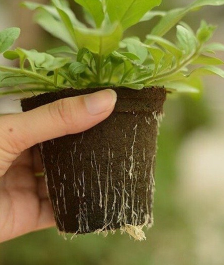 Doniczka torfowa staje się częścią podłoża – nie trzeba jej usuwać przy przesadzaniu.