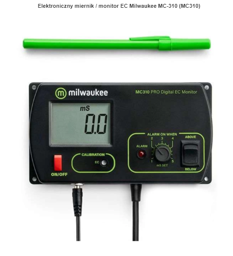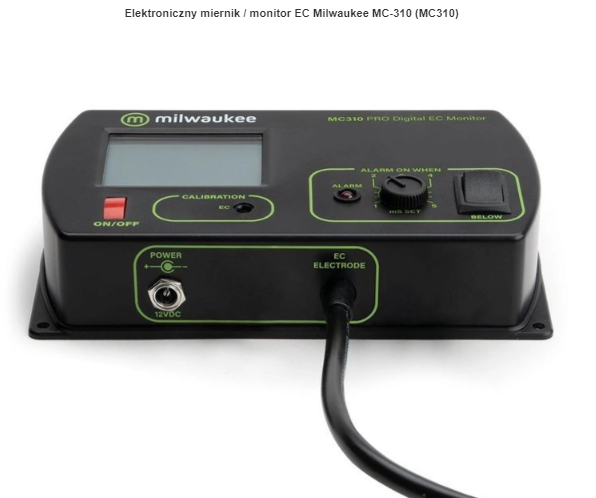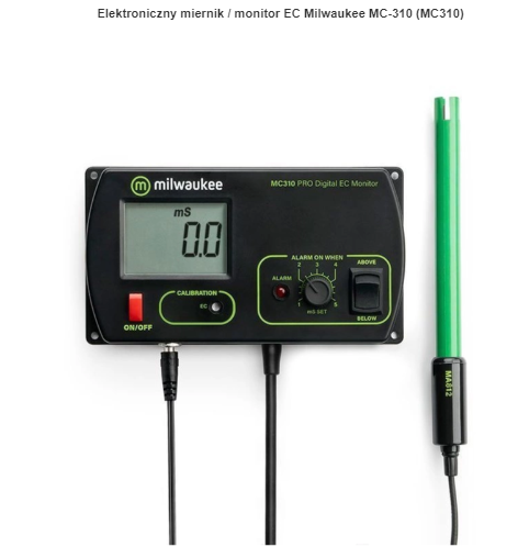 Milwaukee MC-310 to kompaktowy, zasilany z sieci monitor EC do pracy ciągłej w zbiornikach upraw hydroponicznych i systemach nawadniania. Urządzenie utrzymuje elektrodę zanurzoną w roztworze, wyświetla bieżącą przewodność 0,0–10,0 mS/cm i ostrzega migającą diodą LED, gdy wartość spadnie poniżej lub wzrośnie powyżej ustawionego progu (1–5 mS/cm). Ręczna, jednopunktowa kalibracja ułatwia szybkie przygotowanie do pracy, a w zestawie znajduje się roztwór wzorcowy, uchwyt ścienny i śrubokręt.