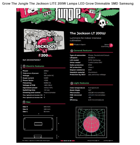 Poznaj najnowszą technologię z Hiszpanii! Grow The Jungle The Jackson Lite 200W to wyjątkowa lampa LED o pełnym spektrum, stworzona z myślą o efektywnej uprawie roślin. Oferuje ultracichą pracę, brak wentylatorów oraz niezrównaną trwałość.