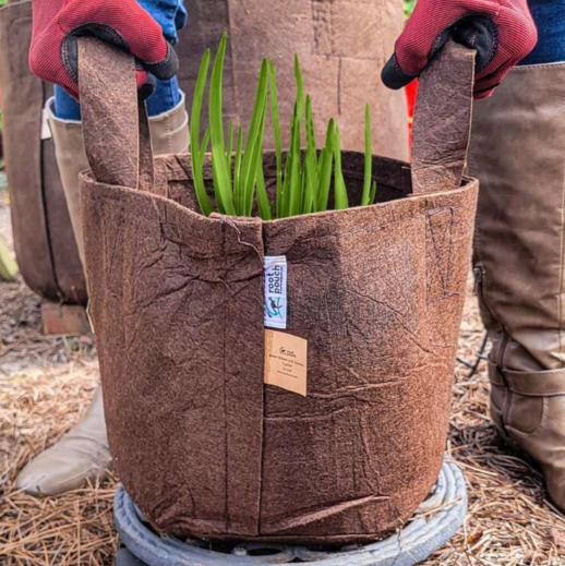 Root Pouch Brown to materiałowe doniczki ogrodnicze zaprojektowane do uprawy roślin praktycznie każdego typu i wielkości, zarówno w domu, jak i na zewnątrz. Lekka, a jednocześnie wytrzymała konstrukcja z uchwytami (w rozmiarach od 22 litrów) ułatwia przenoszenie i transport roślin. Doniczki mogą być używane jako klasyczne pojemniki na powierzchni, ale można je także sadzić bezpośrednio w gruncie – z czasem ulegają degradacji, umożliwiając korzeniom swobodne wrastanie w otaczającą glebę. Tkanina sprawdza się w bardzo zróżnicowanych warunkach klimatycznych i glebowych, od piasku pustynnego po ciężką glinę.
