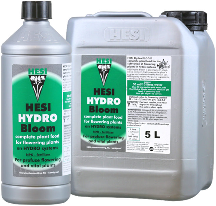 W pierwszym okresie kwitnienia zapotrzebowanie na fosfor i potas jest według opisu zaspokojone w 100% przez Hesi Hydro Bloom. W drugiej fazie kwitnienia do Hydro Bloom dodaje się Hesi PK 13/14, aby w pełni pokryć potrzeby roślin. Hydro Bloom stanowi mieszankę substancji odżywczych, będącą podstawą żywienia w okresie kwitnienia.