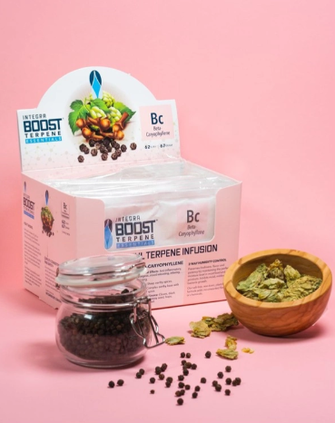 Integra Boost Terpene Essentials to linia regulatorów wilgotności wzbogaconych o naturalne izolaty terpenów, opracowana z myślą o nadaniu produktom konkretnych aromatów, smaków oraz potencjalnych efektów. Seria obejmuje popularne izolaty: linalool, limonen, mircen, humulen, beta-kariofilen, pinen i terpinolen. Terpeny są pozyskiwane z roślin, testowane pod kątem bezpieczeństwa i certyfikowane w standardzie Safe Terpene, co ma potwierdzać brak szkodliwych zanieczyszczeń.