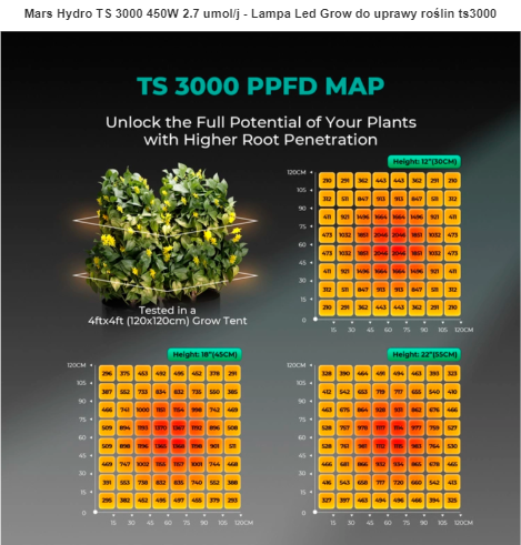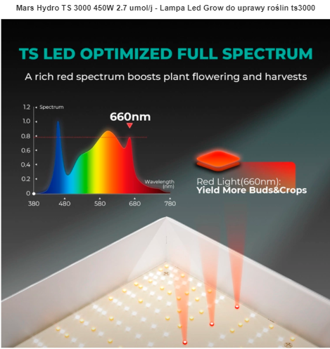 Mars Hydro TS 3000 450W 2.7 umol/j - Lampa Led Grow do uprawy roślin ts3000