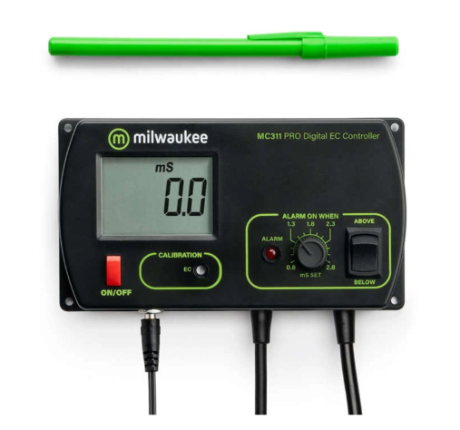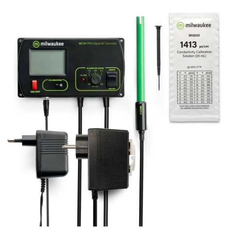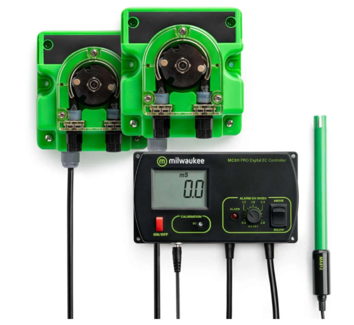 Zestaw MC745 zawiera monitor MC311 EC i dwie pompy dozujące MP810 do automatycznego monitorowania i precyzyjnej regulacji poziomów EC. Po prostu ustaw parametry EC i pozwól sterownikowi EC Milwaukee i pompom zrobić resztę!