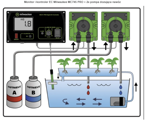 Monitor i kontroler EC Milwaukee MC745 PRO + 2x pompa dozująca nawóz