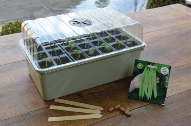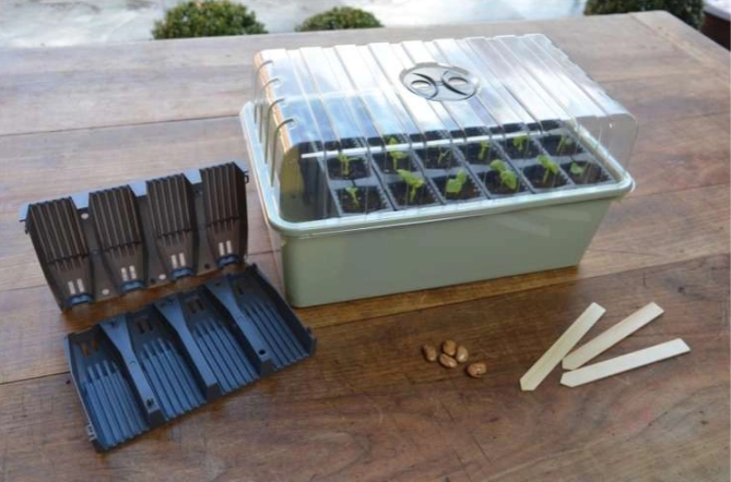 Kompletny zestaw do wysiewu: taca, 28 komórek i przezroczysta pokrywa