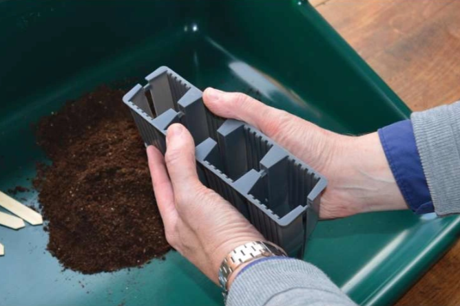 Głębokość komórek 12 cm i prążkowane boki prowadzące korzenie w dół