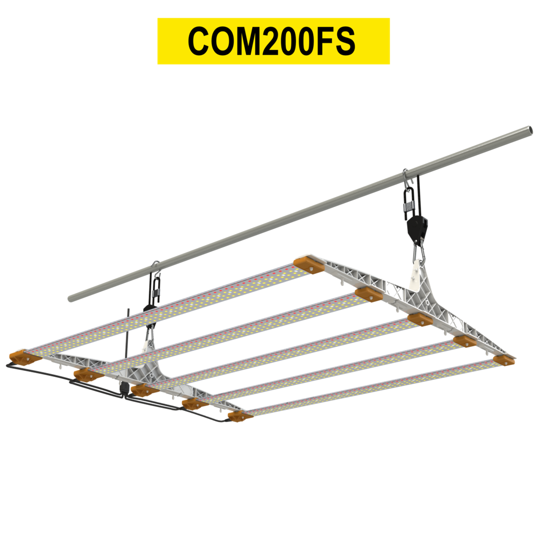 Cosmorrow to gotowe, kompletne zestawy oświetleniowe zaprojektowane do upraw wymagających wysokiego PPFD. Opatentowana, modułowa konstrukcja łączy wodoodporność, wytrzymałość i świetne rozpraszanie światła, zapewniając równomierne doświetlenie bez gorących punktów. Panele można łatwo wymieniać lub odłączać, a ściemnianie 3-stopniowe (100/80/60%) pozwala dopasować moc do fazy wzrostu i warunków w namiocie.