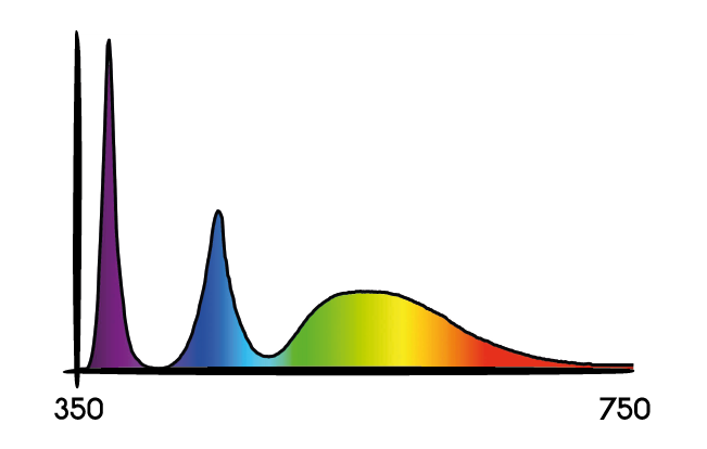 Widmo (3 linie): 6500 K / 365 nm / 6500 K