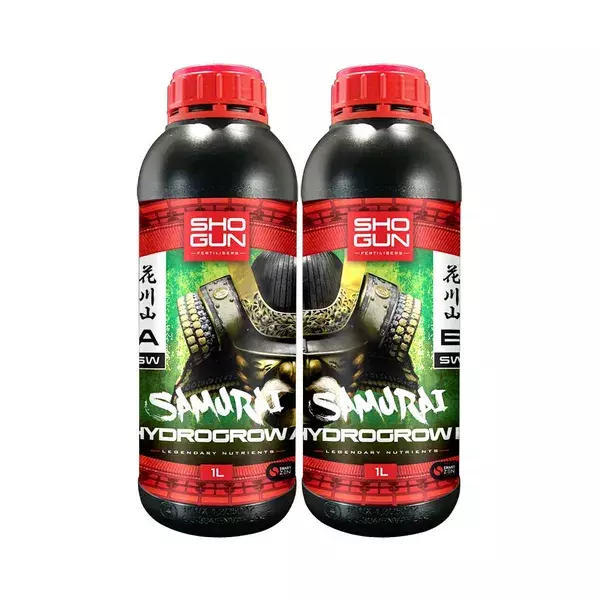SHOGUN Samurai Hydro to kompletna dwuskładnikowa odżywka hydroponiczna, która może konkurować ze wszystkimi innymi. Zawiera wyrafinowane, precyzyjnie opracowane składniki, które zapewniają niesamowity rozwój roślin wegetatywnych i kwitnących. SHOGUN Samurai Hydro zawiera również rewolucyjny składnik SmartZen®, unikalną kolekcję związków, które zwiększają dystrybucję i przyswajanie składników odżywczych w układzie naczyniowym rośliny. Ta najnowocześniejsza technologia dodatkowo narzuca wyższość Samurai nad wszystkimi innymi dostępnymi obecnie składnikami odżywczymi.