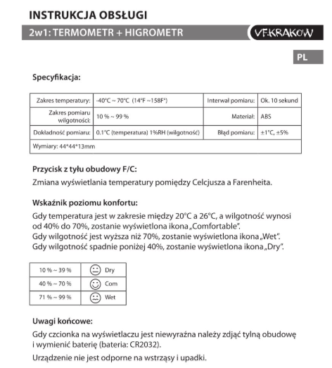 precyzyjny, regularny odczyt temperatury i wilgotności (interwał ok. 10 s),