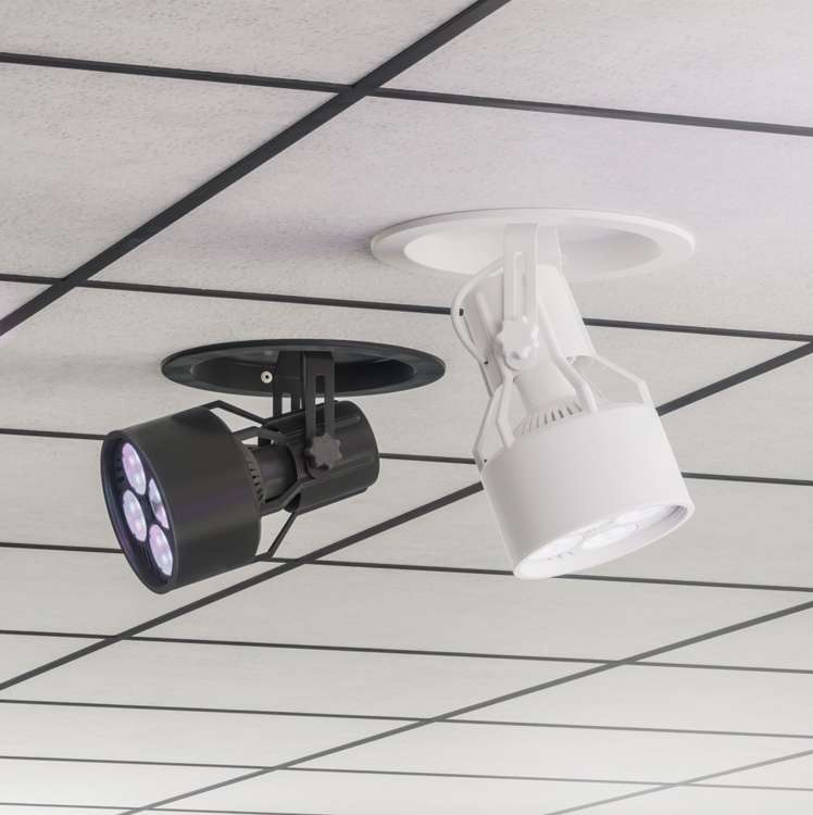 Źródła światła (żarówki) montowane są do specjalnej oprawy (holdera) a następnie do szyny 1m lub 2m. W ofercie znajdziemy żarówki o różnym kącie padania światła - 30st, 40st, 60st lub 80st. Cały system dostępny jest w dwóch kolorach - czarny lub biały.