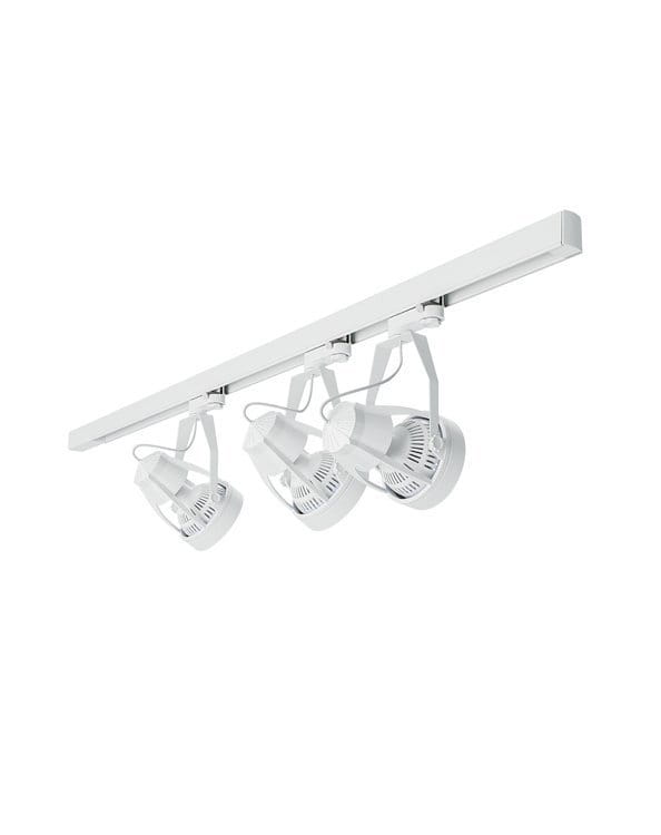 Źródła światła (żarówki) montowane są do specjalnej oprawy (holdera) a następnie do szyny 1m lub 2m. W ofercie znajdziemy żarówki o różnym kącie padania światła - 30st, 40st, 60st lub 80st. Cały system dostępny jest w dwóch kolorach - czarny lub biały.