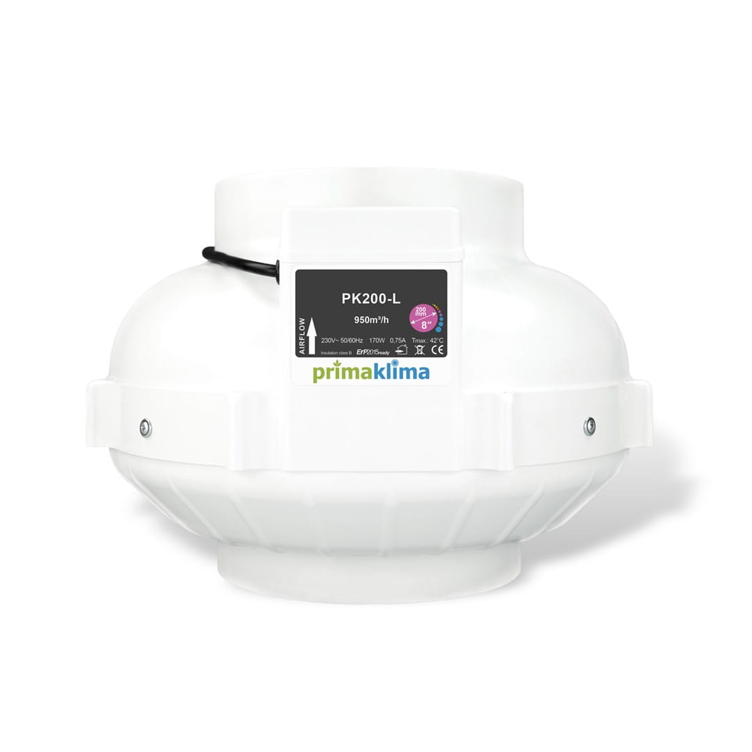 PK160-2 łączy wysoką kulturę pracy z mocnym przepływem. Silnik EBM-PAPST RadiCal z wirnikiem o łopatkach wygiętych do tyłu jest dopasowany do aerodynamicznej obudowy, co obniża hałas i zużycie energii. Urządzenie ma dwustopniową regulację (przełącznik I/II), pracę ciągłą, działa w dowolnej pozycji i jest gotowe do montażu – okablowane i wyposażone w uchwyt ścienny/sufitowy. Trwała, odporna na uderzenia obudowa z tworzywa oraz łożyska kulkowe sprzyjają długiej, bezobsługowej eksploatacji. Idealny do współpracy z filtrami węglowymi i odbłyśnikami CoolTube/Spudnik.