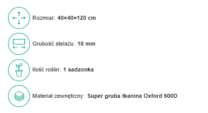 Wymiary: 40 × 40 × 120 cm (ok. 1 sadzonka).