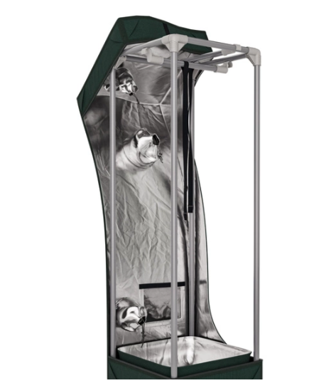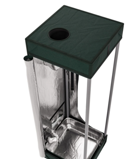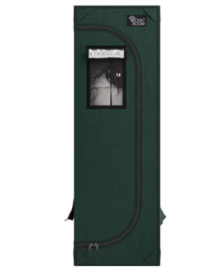 RoyalRoom® Classic 2.0 C40 to profesjonalny namiot uprawowy do mikro-upraw i jednej rośliny. Wersja Classic 2.0 wprowadza udoskonalenia: tłoczone logo RR, dodatkową warstwę światłoszczelną i powłokę PET chroniącą Mylar Diamond 600D. Diamentowa faktura zapewnia bardzo wysoką odbijalność światła, redukcję strat i łatwe utrzymanie higieny (materiał nadaje się do prania). Stalowy stelaż 16 mm z wzmocnionymi łącznikami gwarantuje stabilność pod lampy LED i filtr węglowy. Okno podglądowe na rzep pozwala skontrolować rośliny bez naruszania klimatu.