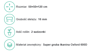 Wymiary: 50 × 50 × 120 cm (ok. 2 sadzonki)