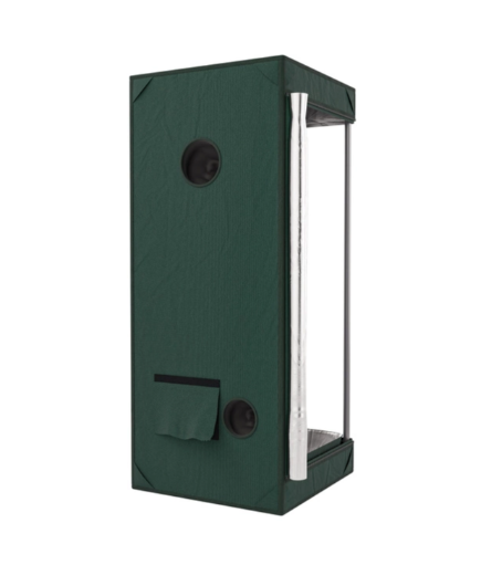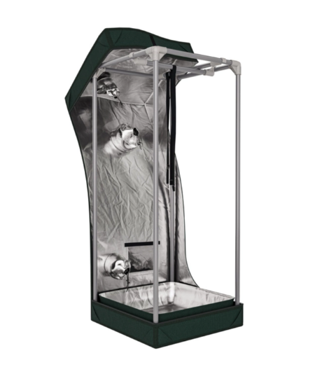 RoyalRoom® Classic 2.0 C50 to solidny namiot uprawowy dla 1–2 roślin, stworzony do stabilnego mikroklimatu w małej przestrzeni. Wersja Classic 2.0 wykorzystuje Mylar Diamond 600D z powłoką PET, dodatkową warstwą światłoszczelną i tłoczonym logo RR – zapewnia bardzo wysoką odbijalność światła, ogranicza przenikanie zapachów i jest łatwa w czyszczeniu (materiał nadaje się do prania). Stalowy stelaż 16 mm z wzmocnionymi łącznikami gwarantuje stabilność pod lampy LED i filtr węglowy, a okno podglądowe na rzep pozwala kontrolować rośliny bez utraty klimatu. Ściągacze przy otworach ułatwiają szczelny montaż kanałów.